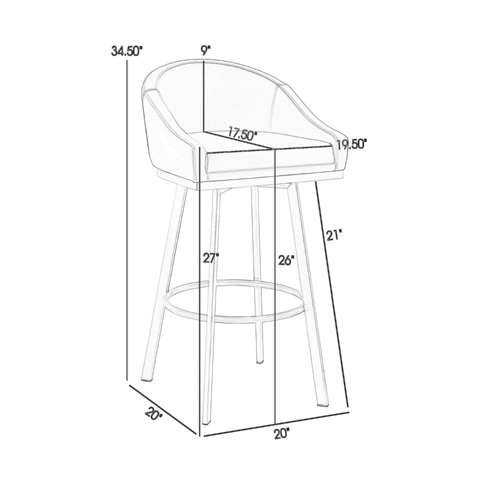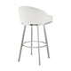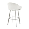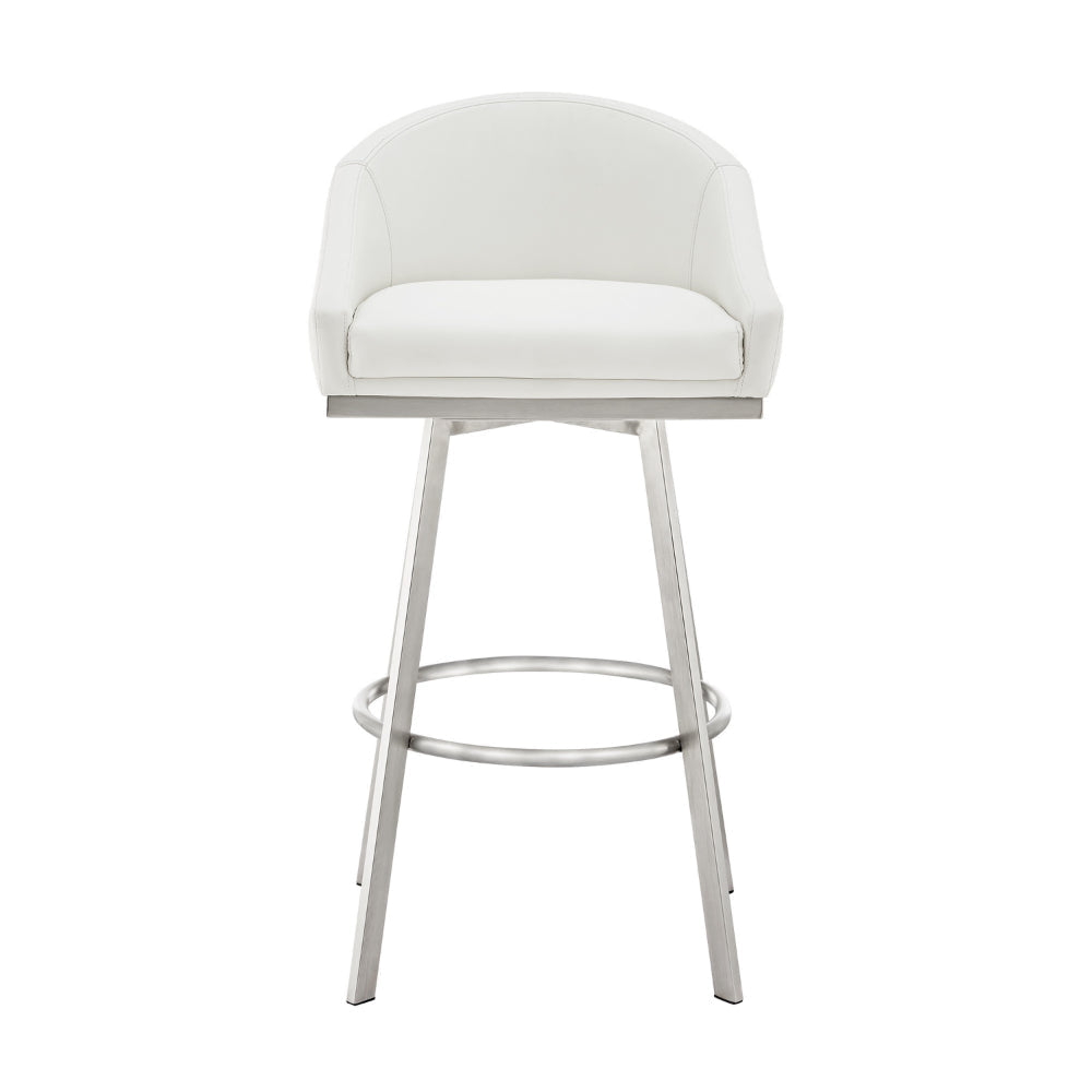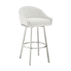 Emanating contemporary form and function, our Dalza counter stool chair is crafted from brushed stainless steel for durability and a deluxe charm. Its seat, enveloped in sophisticated white vegan faux leather, not only contributes to a chic aesthetic, but also offers lasting comfort while you and your guests sit at your kitchen island or counter height table. Check out Dalza collection for more.