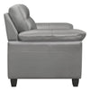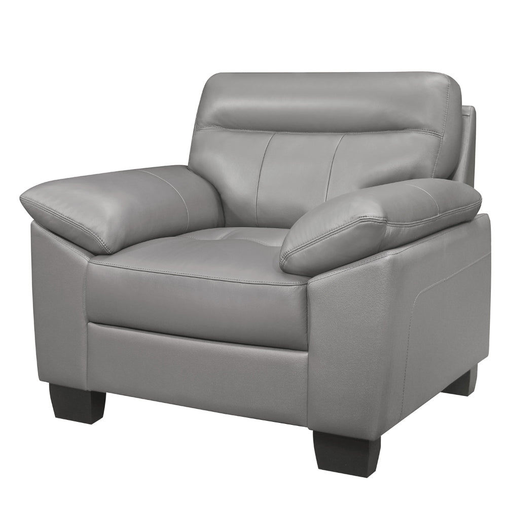 • Classic gray top grain leather upholstery where the body touches and faux leather elsewhere