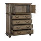 Add sophistication and organization to your home decor with the tall dresser chest from our Danya collection. Its weathered pecan brown finish and knotty pecan veneer exude warmth while the elegantly carved fronts of the storage doors and egg and dart molding lend a touch of old-world charm. Four drawers provide ample storage space under the topper cabinet. Check out our Danya collection for more.