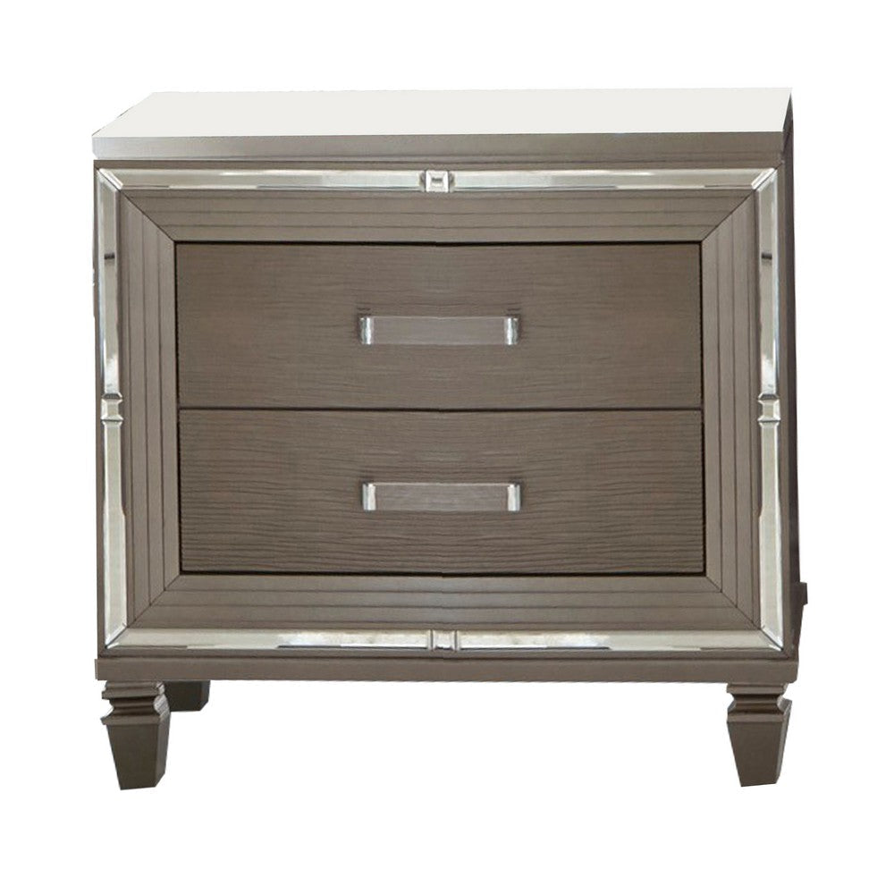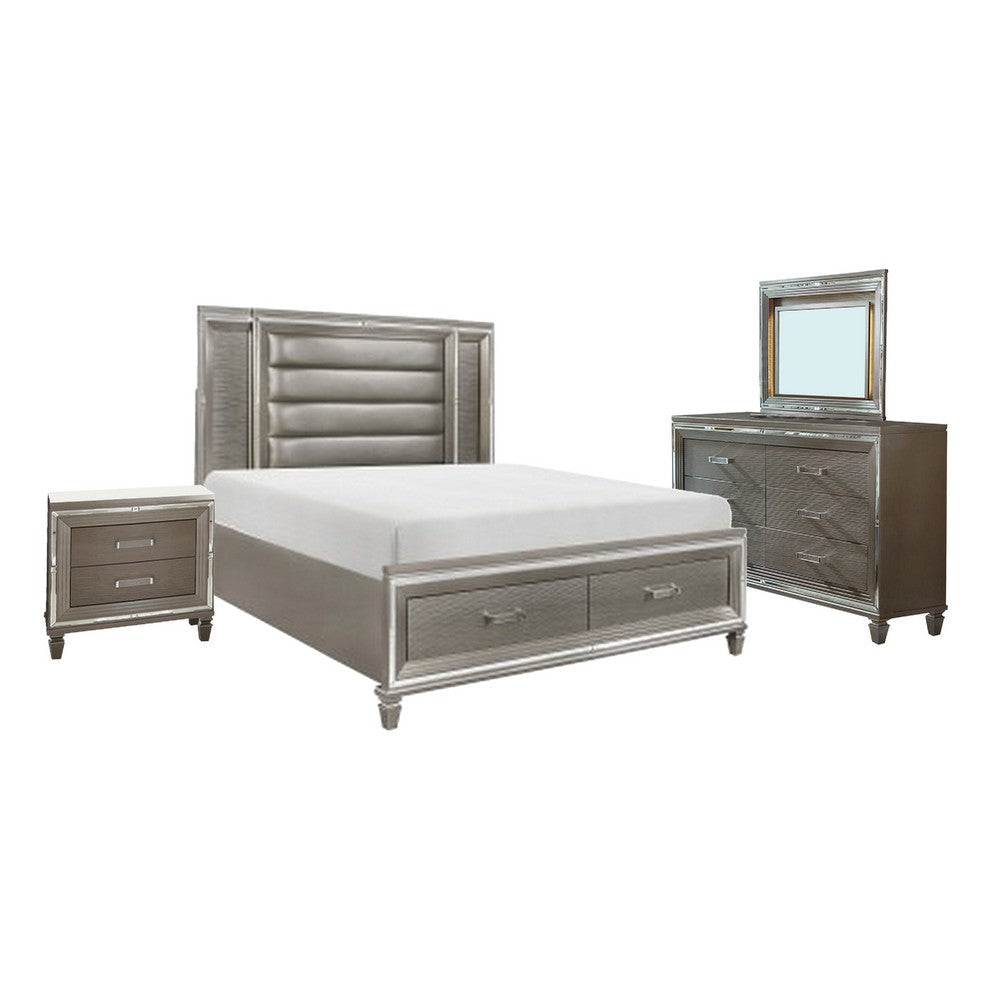 Deci 4 Pc Queen Bedroom, LED Headboard, Mirrored Trim, Champagne Silver