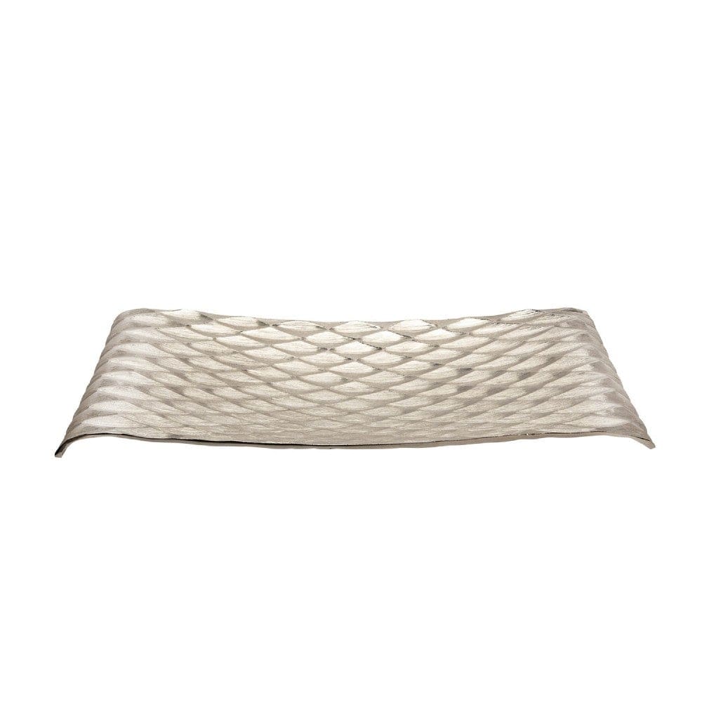 Display an array of artistic beauties and decor items atop these decorative trays, available in a set of 2. The textured hammered pattern with sloped design at the sides provides it a distinct and beautiful look. The aluminum construction ensures durability and longevity of the piece.