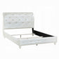 Dorie Full Bed, Pearl White Faux Leather Victorian Carved w Crystals