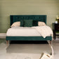 Dury Queen Size Platform Bed, Green Velvet Upholstery, Tufted Wingback