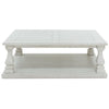 Capture the essence of casual, traditional style with this rectangular cocktail coffee table in antique white. Crafted from hardwood solids and resin, its wide plank design and robust baluster legs bring an air of sophistication and timeless charm. This table offers both beauty and durability, complete with a spacious lower shelf for storage and display. Check out our Dyne collection for more.