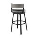 - High density foam filled rounded seat cushion, upholstered in gray finished soft fabric