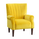 Elle 35 Inch Accent Chair Armchair, Tufted Yellow Velvet, Brown Solid Wood By Casagear Home