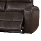 This dual manual recliner sofa is a statement of comfort and durability. Crafted from robust hardwood and metal, it is upholstered in luxurious brown real and vegan faux leather, it exudes sophistication while being easy to maintain. Featuring a double-sided pull tab reclining button motion, each side of the sofa can be adjusted independently. Check out our Elle collection for more options.