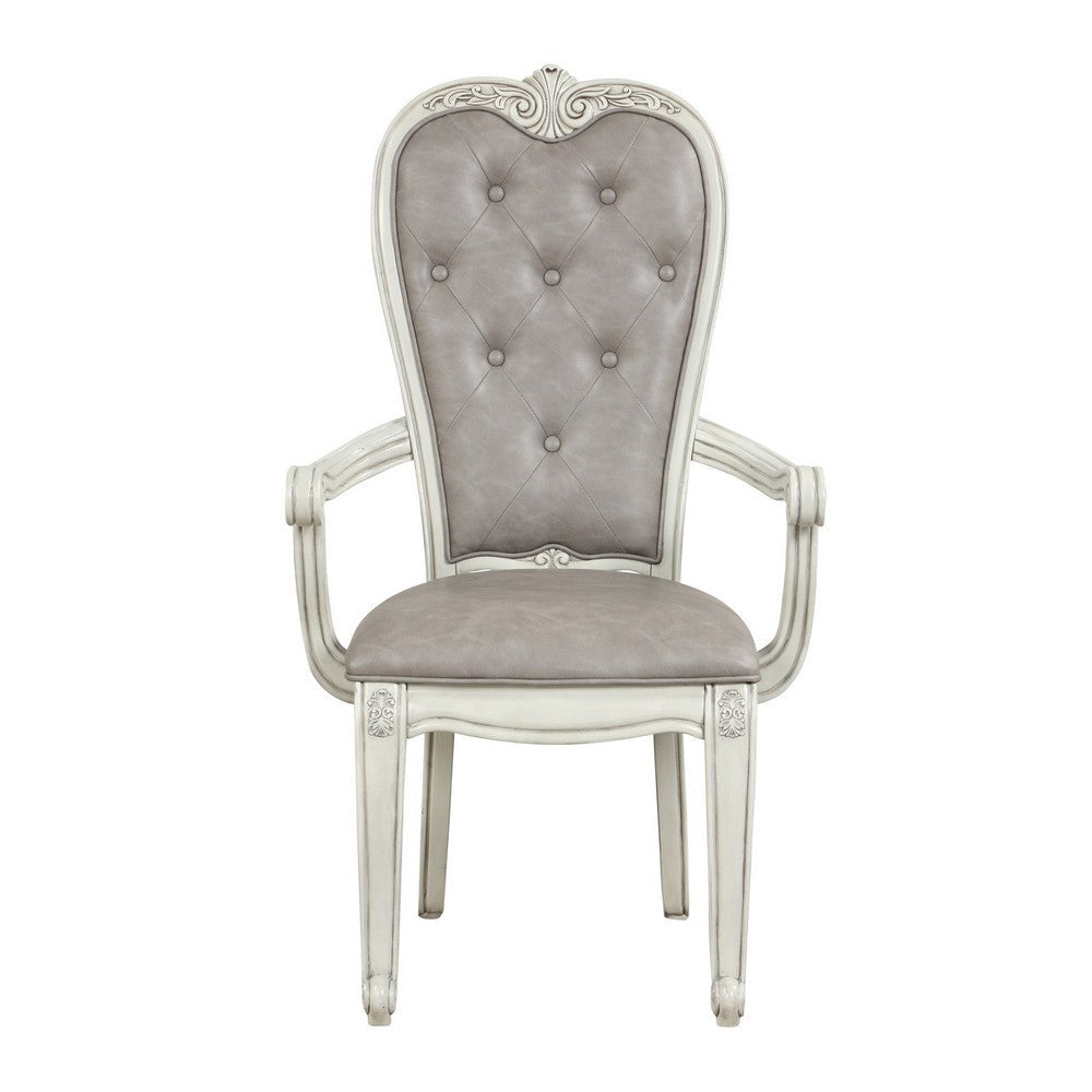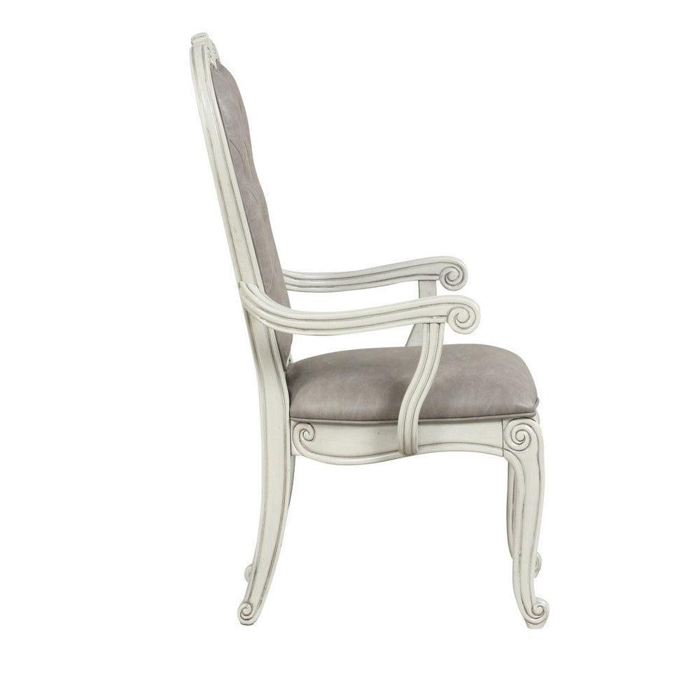Ellia 26 Inch Side Dining Armchair, Gray Tufted, Vintage Turned Feet, Ivory By Casagear Home