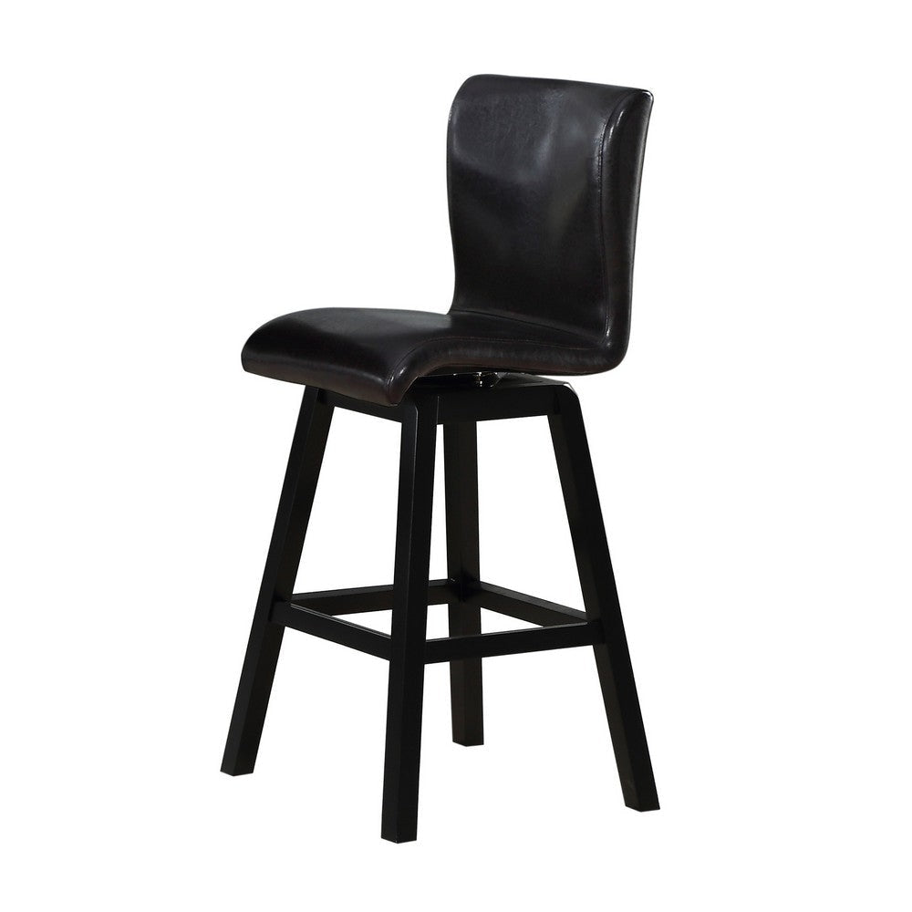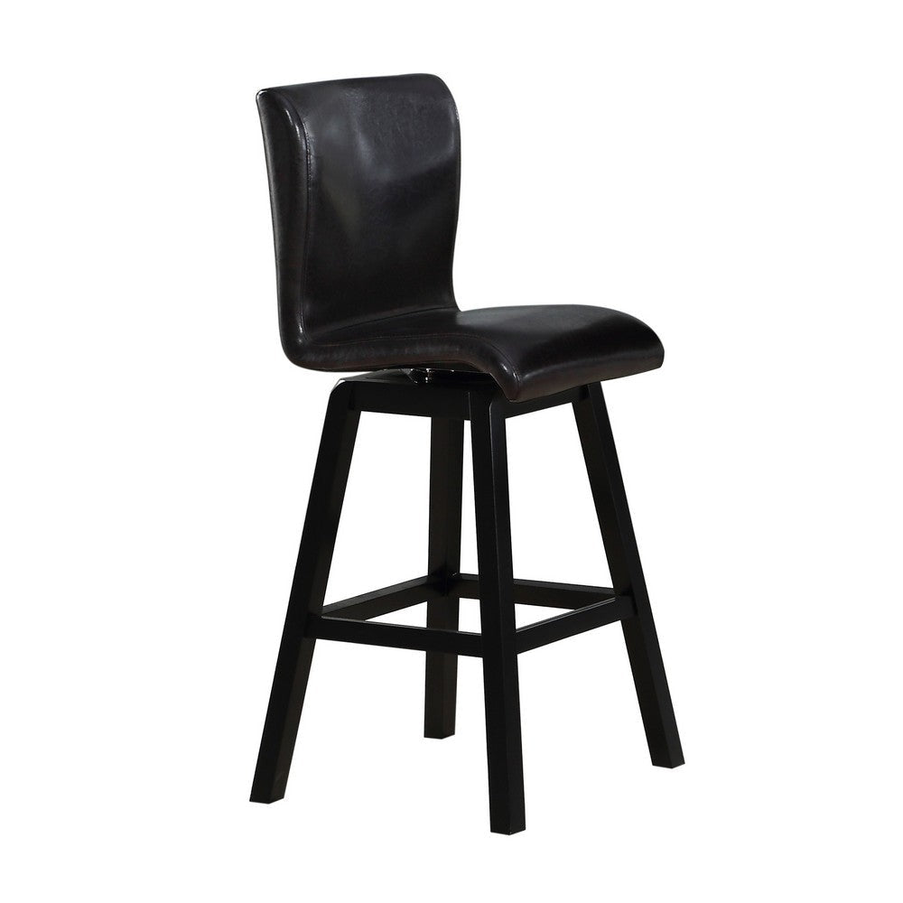 Elsa 32 Inch Swivel Bar Height Chair, Black Faux Leather, Wood, Set of 2 By Casagear Home