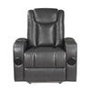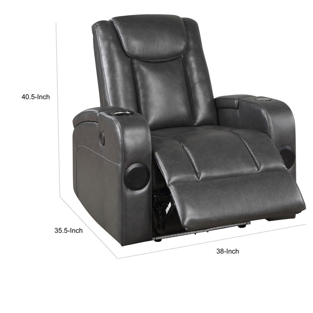 Emily 38 Inch Power Recliner Chair, Cooling Cupholder, LED, Gray PU Leather By Casagear Home