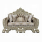 Esen Ornate Loveseat, 5 Accent Pillows, Gold , Tufted Brown Velvet