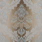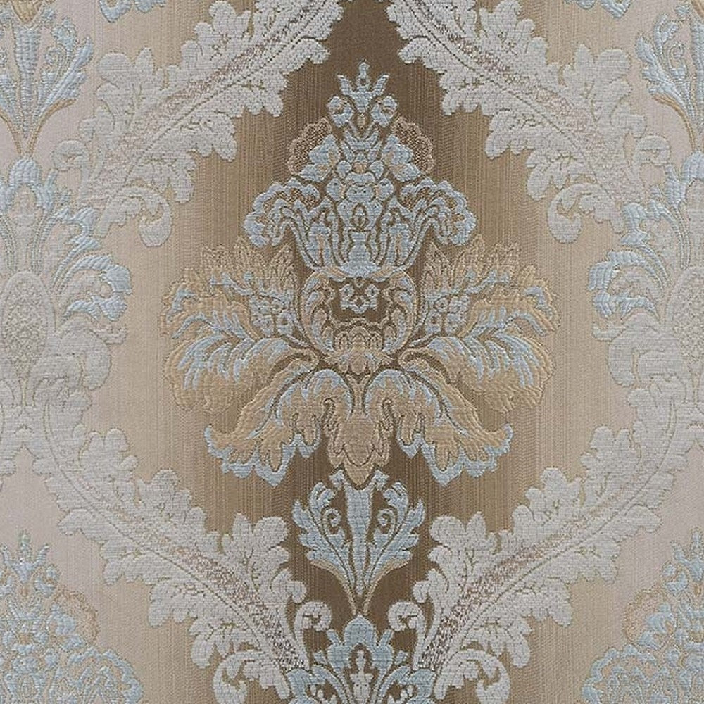 • Comfy seat cushion with soft brown fabric upholstery features beautiful damask print