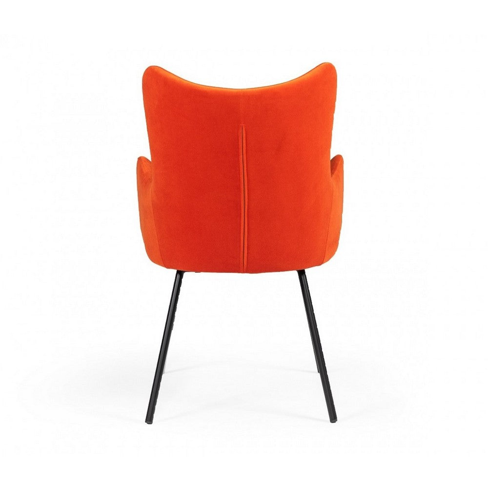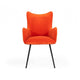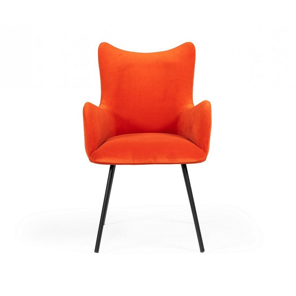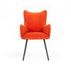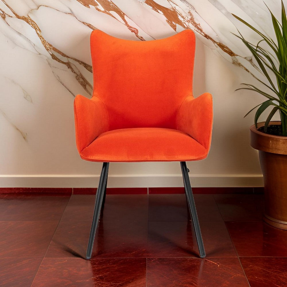 Description:This wingback dining chair is a great addition to your home. It features orange fabric upholstery with winged back and curved armrest in high density cushioning that offers a comfortable seating. Supported on black coated metal legs complementing the versatile look of the chair.