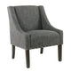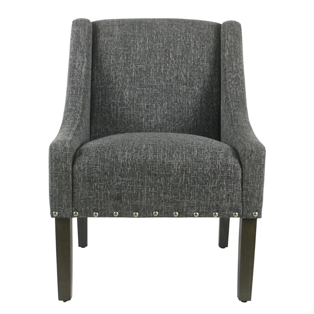 - The swooping arms of this chair curve up to create a classic wingback style.