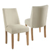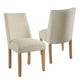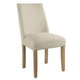 The frame of the chair is made from durable wood materials and it is upholstered in beige woven fabric.