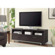 If you are someone who is fond of modern and fashionable d�cor items then don?t wait anymore and bring this appealing tv console home. It features three shelves and two large drawers with chrome hardware and brushed silver frame. It has a beautiful cappuccino(brown) finish that adds to its beauty.