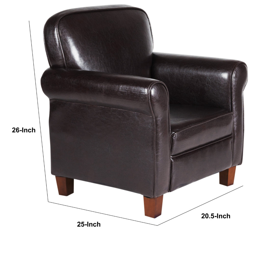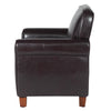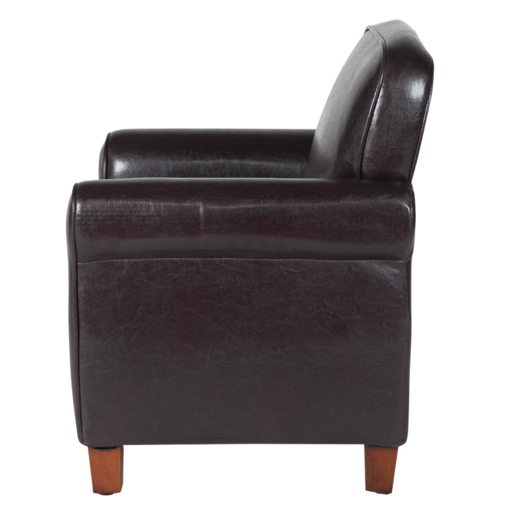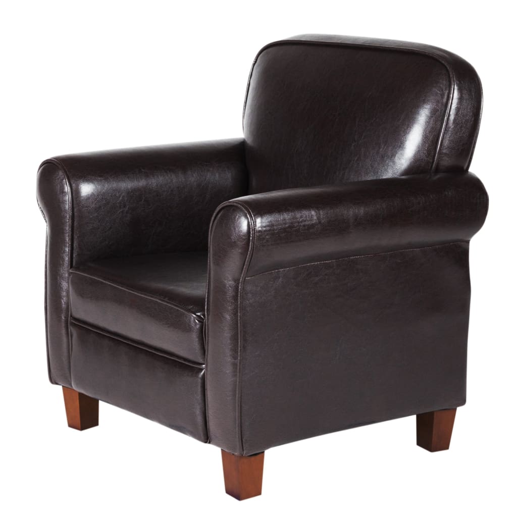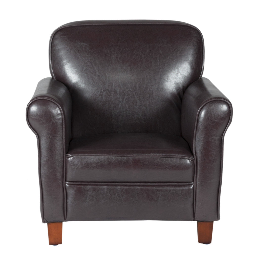 - Constructed from durable wood and plywood; features brown faux leather upholstery.