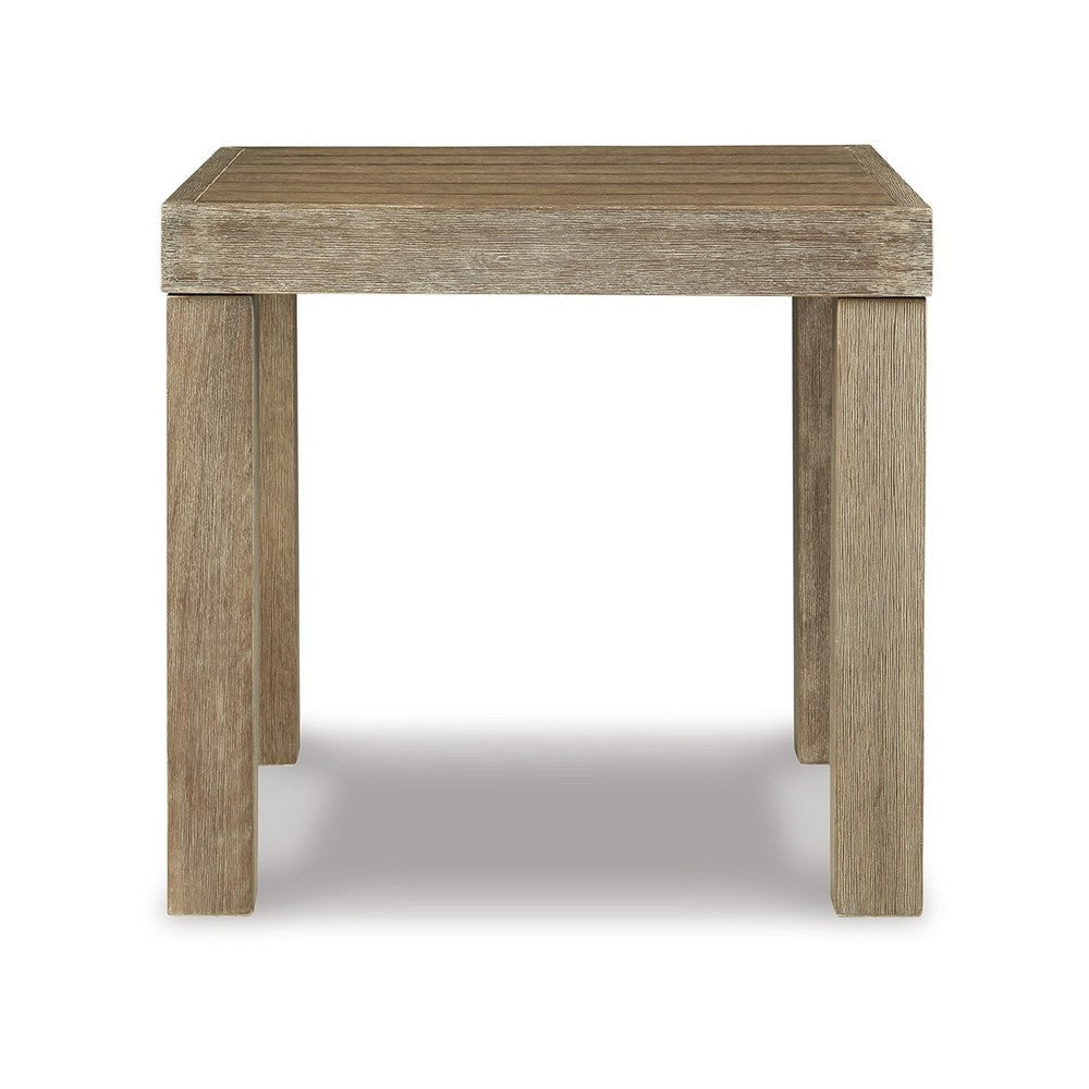 Ashley Fayi 22" Outdoor End Table, Slatted Design, Natural Brown