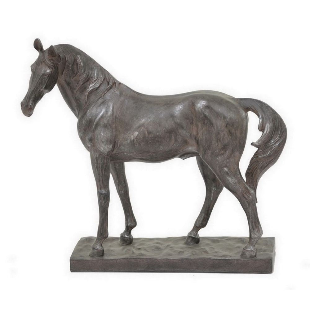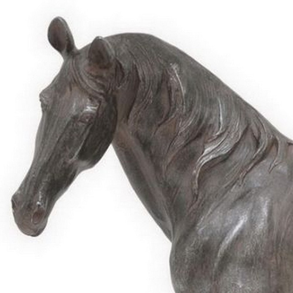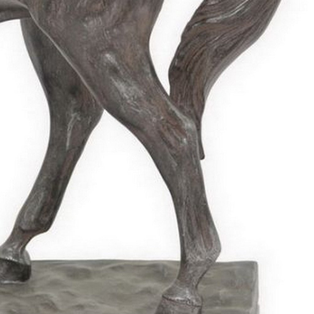 Fenny 16 Inch Standing Horse Statuette, Tabletop Figurine, Gray and Brown Resin By Casagear Home