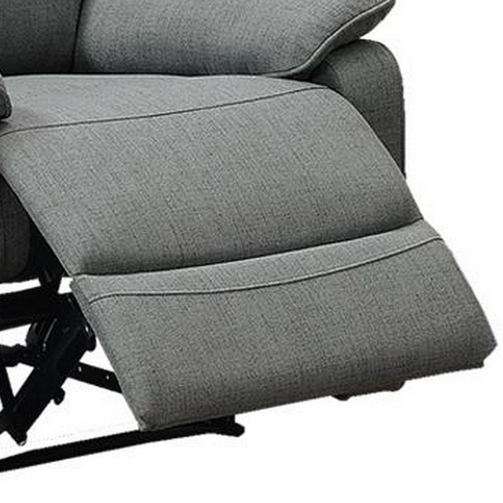 Fery 35 Inch Manual Recliner Chair, Gray Burlap, Cushioned Seat, Solid Wood By Casagear Home