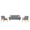 Description:Introduce a fresh accent or centerpiece to your home that radiates rest, relaxation, and effervescent style with this gorgeous light gray sofa and two chair set. Each piece is made with a brown solid wood frame for long lasting durability and given extra thick cushioned seats for a distinct feeling of soft, luxurious comfort to your living room or lounge. Check out our Gala collection for more.