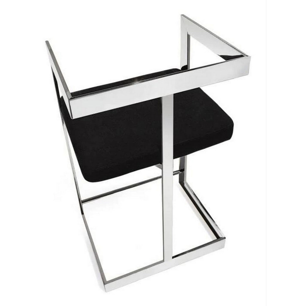 Gei 26 Inch Counter Height Chair, Cantilever, Black Velvet, Chrome Metal By Casagear Home