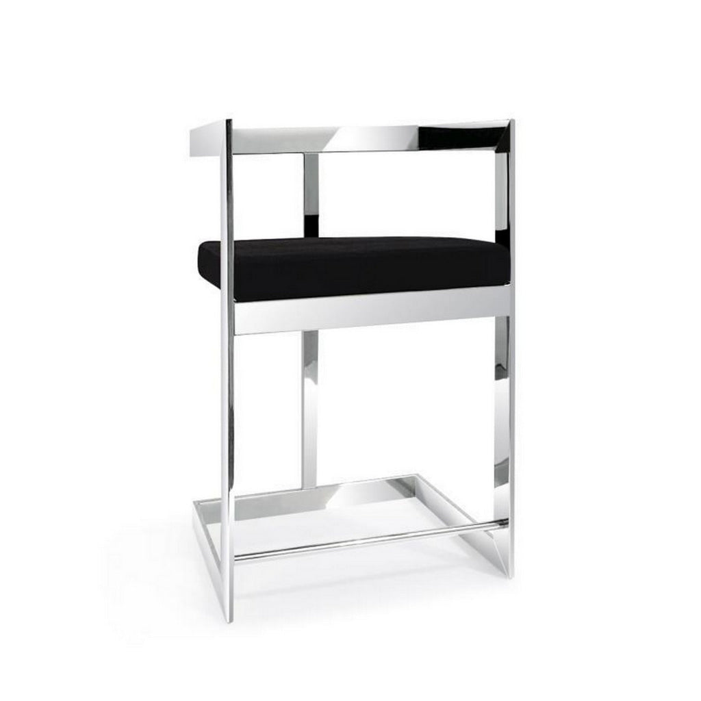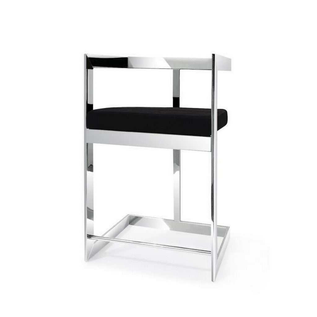Bring luxury and charm to your living room with our Gei counter height stool chair, perfectly suited to stylize any interior decor. The plush, padded seat with sleek black velvet upholstery provides lasting comfort, while the chrome metal frame offers durability and stability. This piece brings contemporary charm to any kitchen island or counter height table. Check out our Gei collection for more.