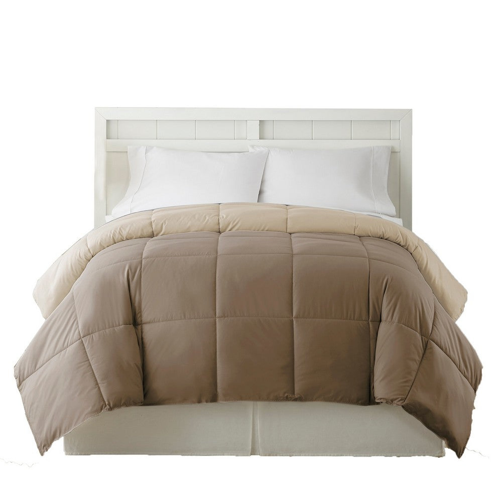 Update your bedroom look in style with the inclusion of this cozy twin size comforter. Made from sumptuous and soft down alternative microfiber for a comfortable experience in elegant brown and gold color. It features box quilted details which bestow an appealing look to the comforter. The machine washable feature saves the hassle of dry cleaning while the reversible attribute makes it a versatile and comfortable companion to your bed.