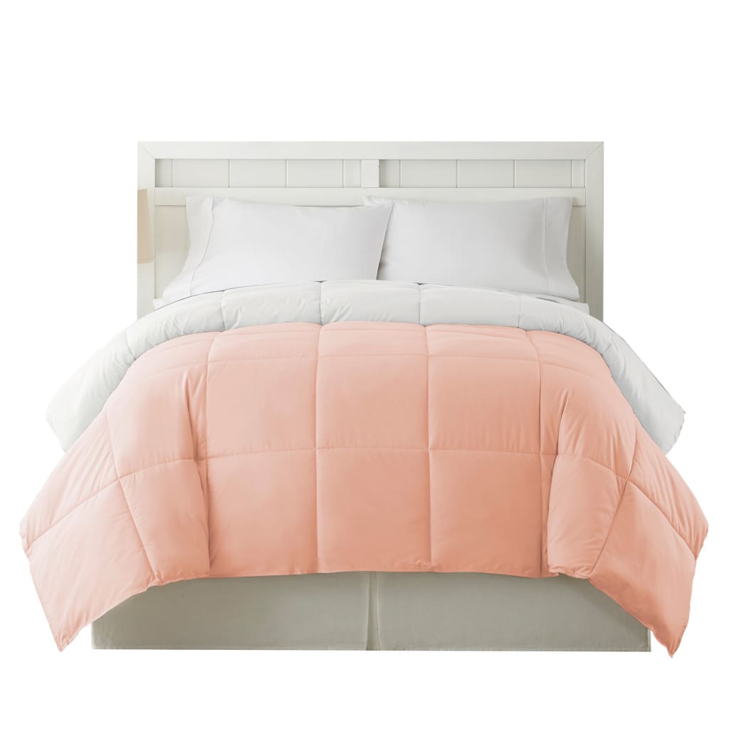 Genoa Twin Comforter | Box Quilted | Reversible | White & Pink