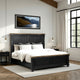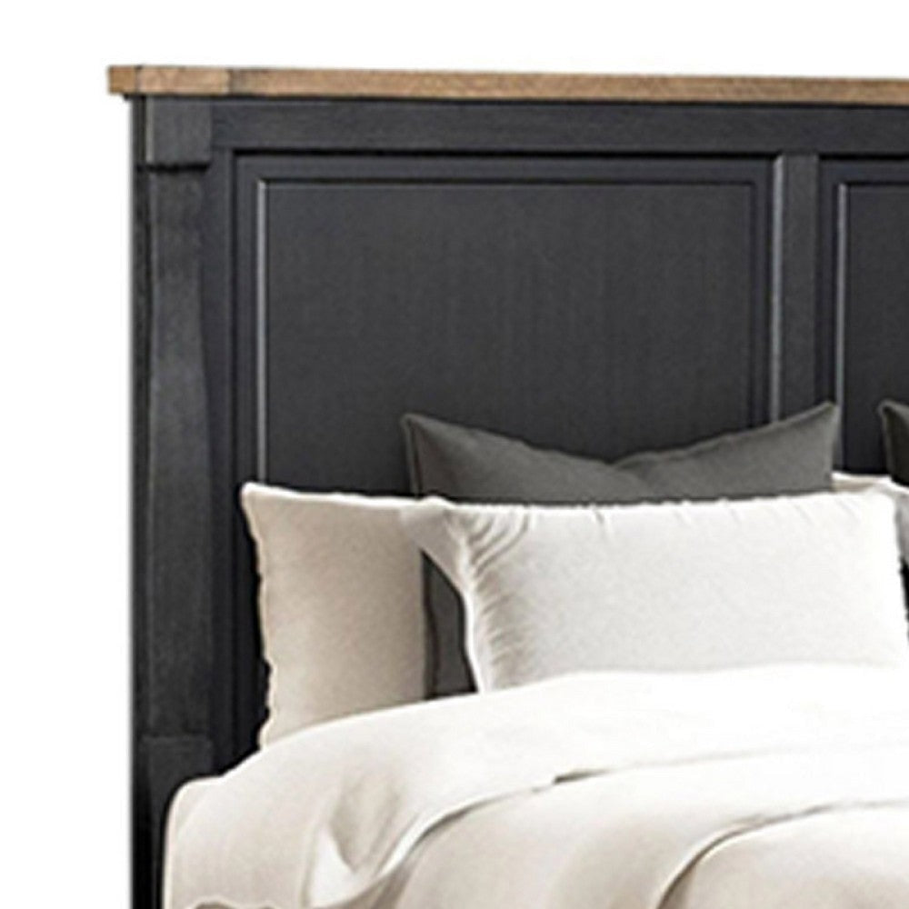 Ginie Queen Bed | Tall Headboard | Farmhouse | Black, Oak Brown Wood