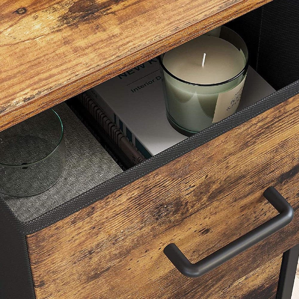A safe case for your bedroom essentials, this durable MDF storage dresser is a unique and practical piece of craftsmanship and functionality. The seven drawers are backed by thick, sturdy MDF wood and finished in rustic brown color, the spacious top allows for a variety of hand curated decorations. The fabric texture of the drawer in a warm brown tone makes this piece lightweight, rustic and cool. Check out more from our Grace collection.