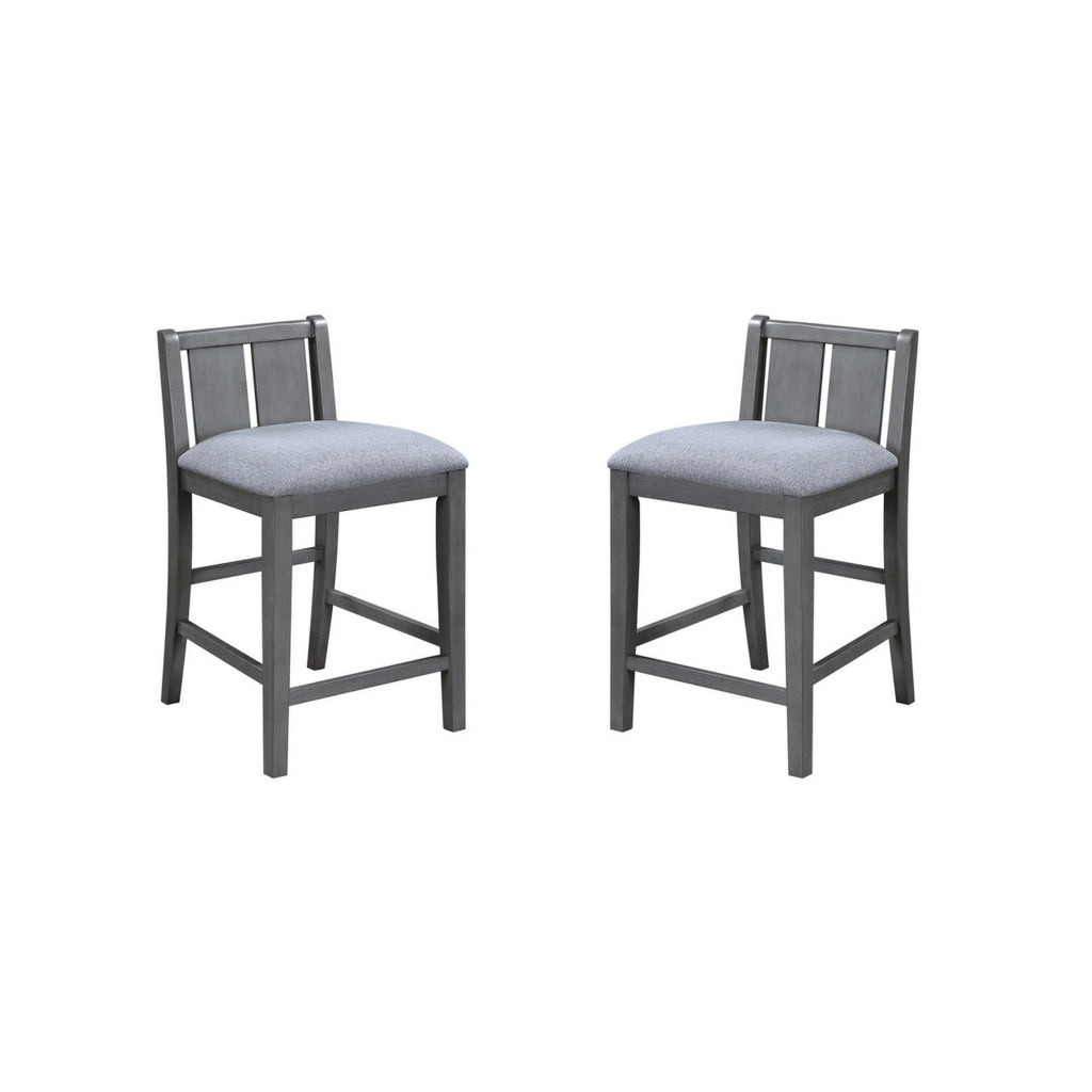 Description:Elevate both aesthetics and practicality in your dining room with our set of two Ham counter height dining chairs. Upholstered in chic gray fabric, these chairs offer a contemporary aesthetic while ensuring a comfortable seating experience. Each chair features a stylish slat back design with added footrests meticulously crafted from solid wood. Check out our Ham collection for more set pieces.