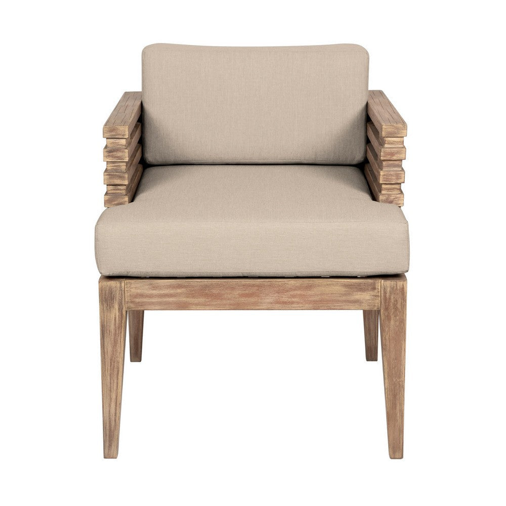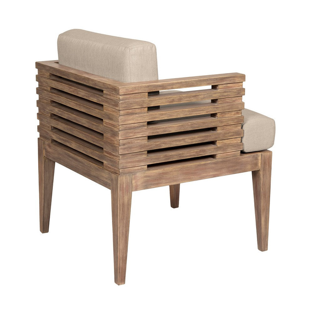 Hida 24 Inch Outdoor Patio Dining Chair, Ridged Brown Wood, Olefin Cushions By Casagear Home