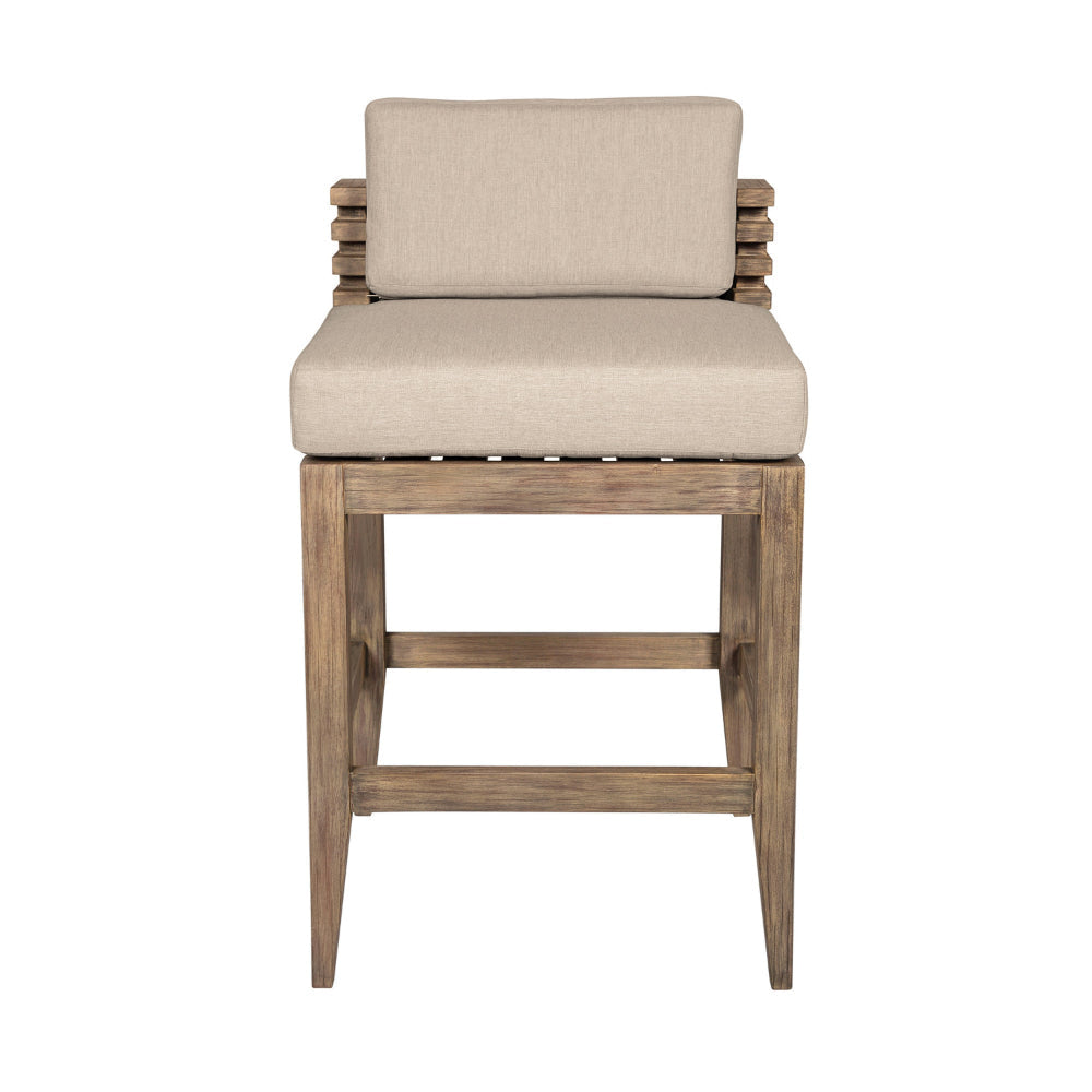 Hida 28 Inch Outdoor Patio Counter Stool Chair, Taupe, Olefin Cushions By Casagear Home