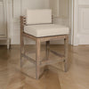Add a touch of modern beauty to your indoor or outdoor space with our patio counter stool chair. It is crafted from brown eucalyptus wood with UV and weather-resistant material that stands up to the elements. The plush beige high-density foam cushions offer a wonderfully comfortable sitting experience at your counter height table. Check out our Hida collection for matching set pieces.