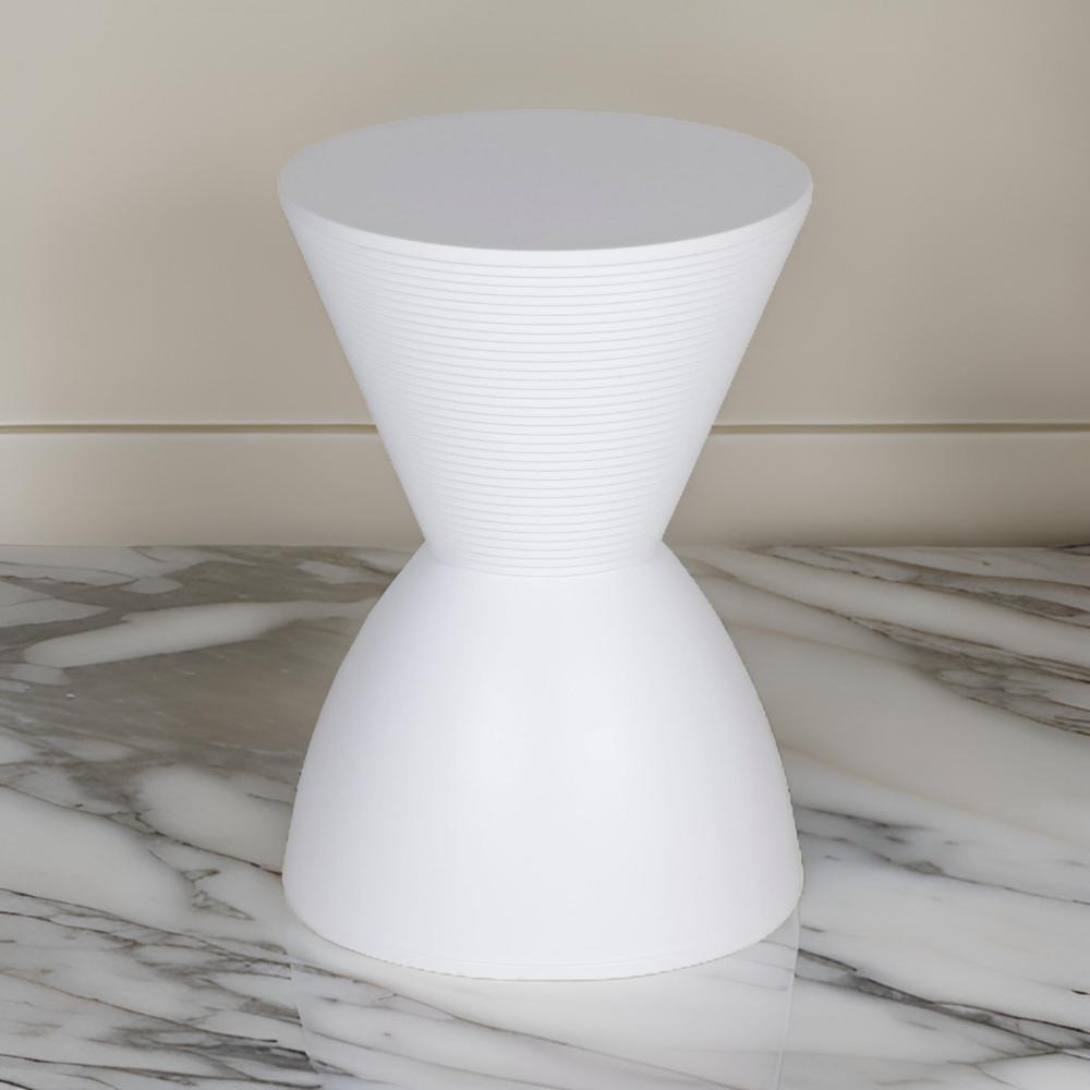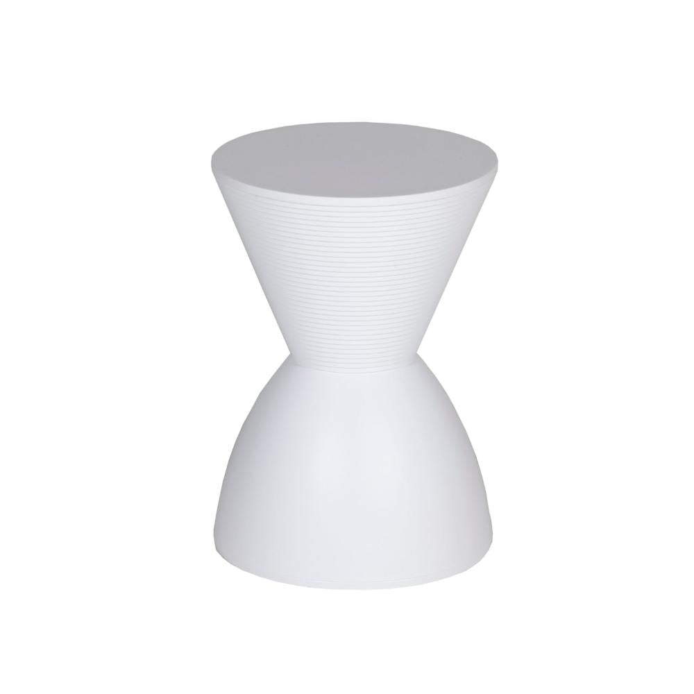 Description:Embrace the timeless style of this modern indoor outdoor side table to create a modern decor space in your home. This hourglass-shaped piece features a white polypropylene frame and a round tabletop, bringing with it a touch of mid-century modern elegance. You can use it anywhere from the kitchen nook to the patio or backyard bar. Check out our Hillary collection for more options.