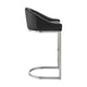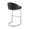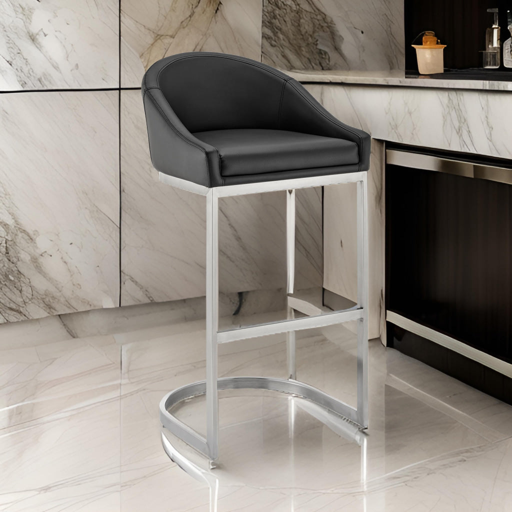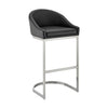Description:This barstool chair from our Holo collection is made with brushed stainless steel for a modern look. The crisp black vegan faux leather upholstery elegantly wraps the stylish barrel-style seat, creating an inviting and chic focal point. What sets this barstool apart is its innovative L-shaped cantilever base, providing a contemporary twist to its design. Check out our Holo collection for more.