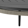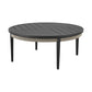 Hosa 42 Inch Outdoor Coffee Table, Black Round Slatted Top, Gray Rope Apron By Casagear Home