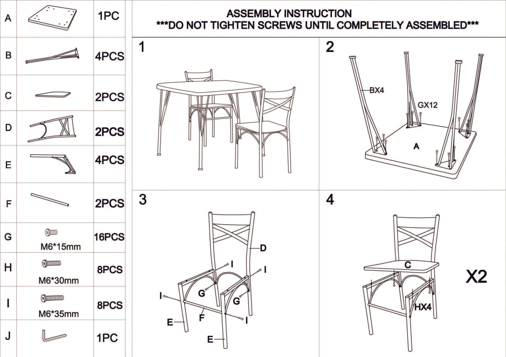 - Table and chairs are made up of wood and metal coated in the black powdered finish.