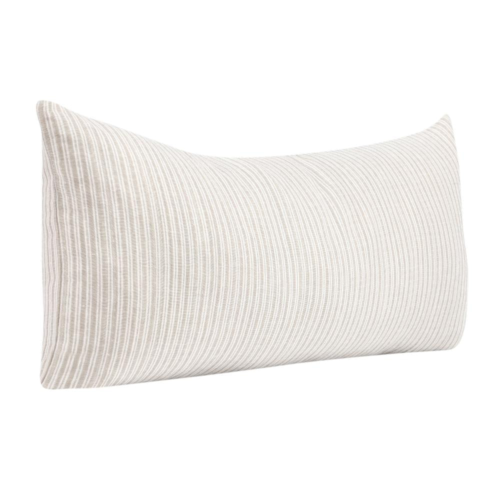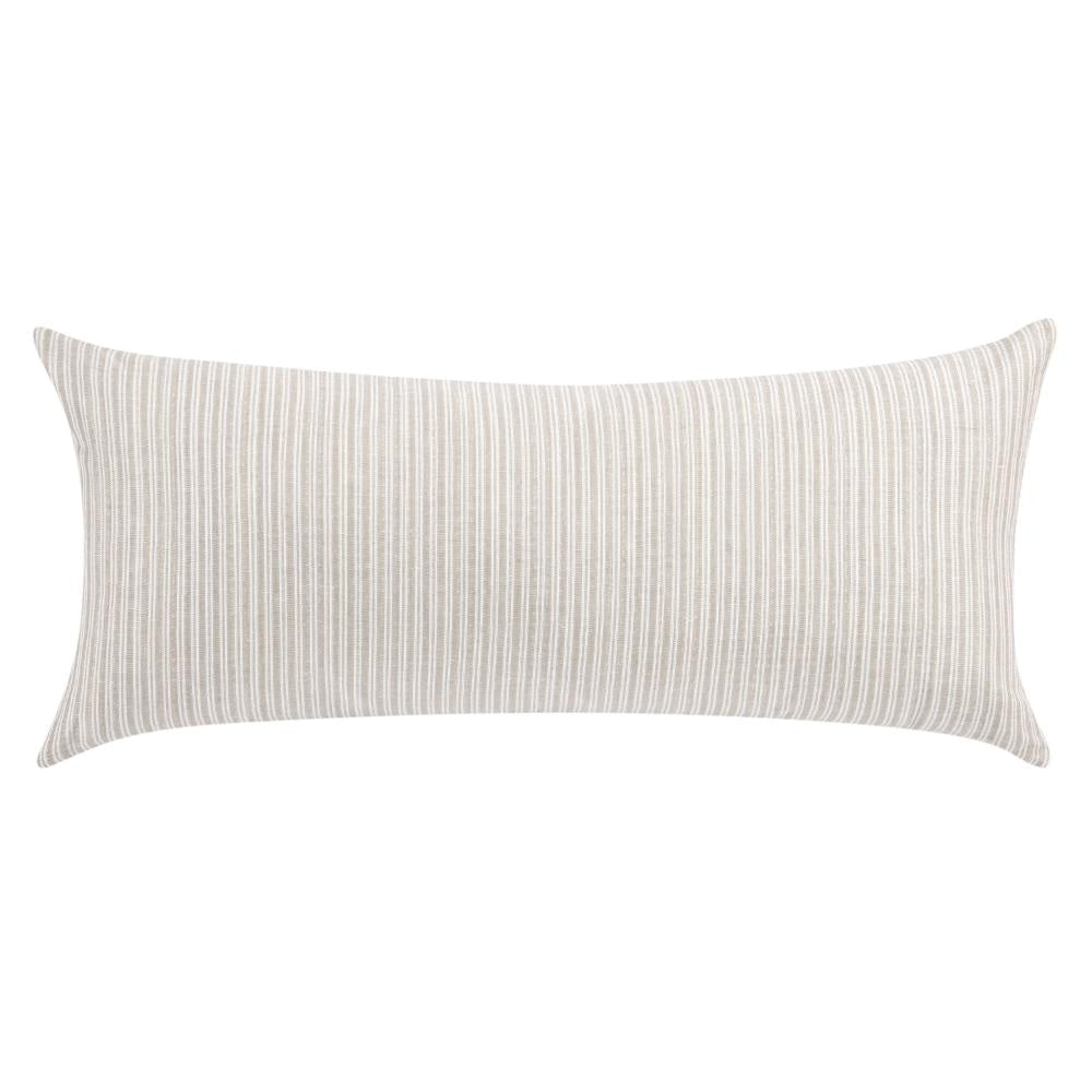Irma Lumbar Throw Pillow, 16x36in Stripe Pattern, Beige Cotton Linen