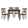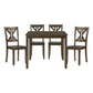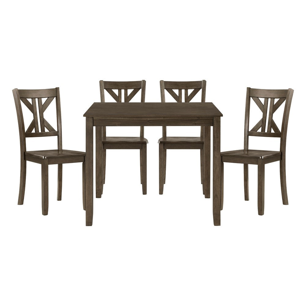 Description:This elegant five piece dining set includes a dining room table and four chairs. They have a charcoal brown finish over birch veneer, adding depth and sophistication to your space. The table has a square top and a dining height design, ideal for your dining room or kitchen. The chairs have a divided X back design and wood seats that offer comfort and style. Check out our Ivy collection for more.
