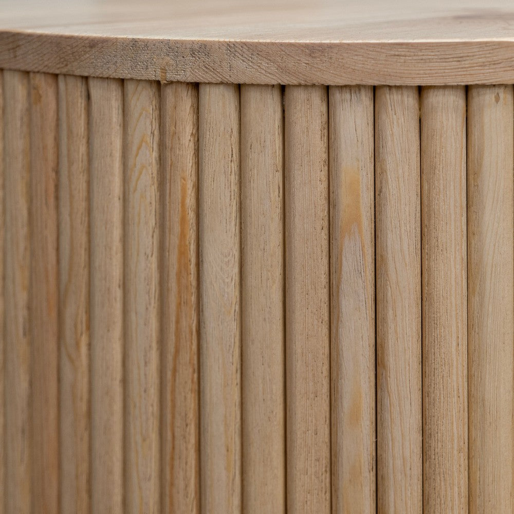 Discover the elegance and functionality of our Izya side end table, crafted from durable solid pine wood with a natural brown finish. Its round top features a convenient drawer equipped with smooth glider tracks. The table's standout design element is its Egyptian-inspired proto doric column base, showcasing intricate ribbed details. Check out our Izya collection for more.
