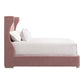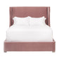 • Tall winged upholstered headboard in soft petal pink velvet provides comfortable headrest