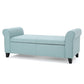 Jacob Storage Ottoman Bench, Rolled Arms, Blue Fabric, Black, 50"