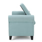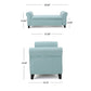 • Generous upholstery in a light blue fabric offers a smooth, plush surface for comfortable seating