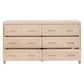 This wide dresser is a harmonious blend of style and function in a striking transitional design. Featuring a light honey finish juxtaposed with brushed brass accents, this chest embodies elegance. It features six spacious drawers, each equipped with full-extension metal glides for effortless accessibility. Check out our Jae collection for more options.