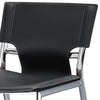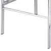 - Rests upon straight front and subtly curved back legs in a chrome finish