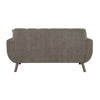 A blend of mid-century charm and everyday comfort, the Jany loveseat features clean lines, retro-inspired curves, and smart detailing. Wrapped in a café brown textured microfiber, it adds visual warmth with a soft hand feel. The gently scalloped tufted back, two pillows, and bold arm framing create a comfortable and timeless silhouette. Explore more in our Jany collection by Casagear Home.