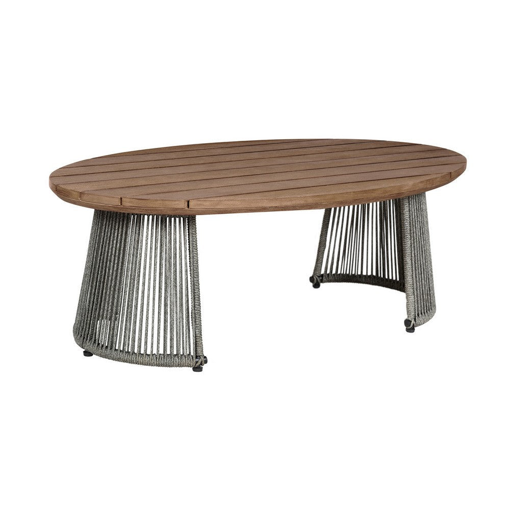 Jax 47 Inch Outdoor Coffee Table, Oval Slatted Top, Gray Rope Braiding By Casagear Home