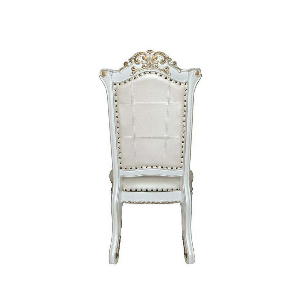 Description:A perfect addition to your dining space, this expertly crafted faux leather dining chair, available in a set of two, features a soft cushion backrest with button tufting, an ultra soft cushioned seat with nailhead trim, and sturdy wood legs with floral scrolled detailing in a gold finish. Check out our Jess collection for more options.
